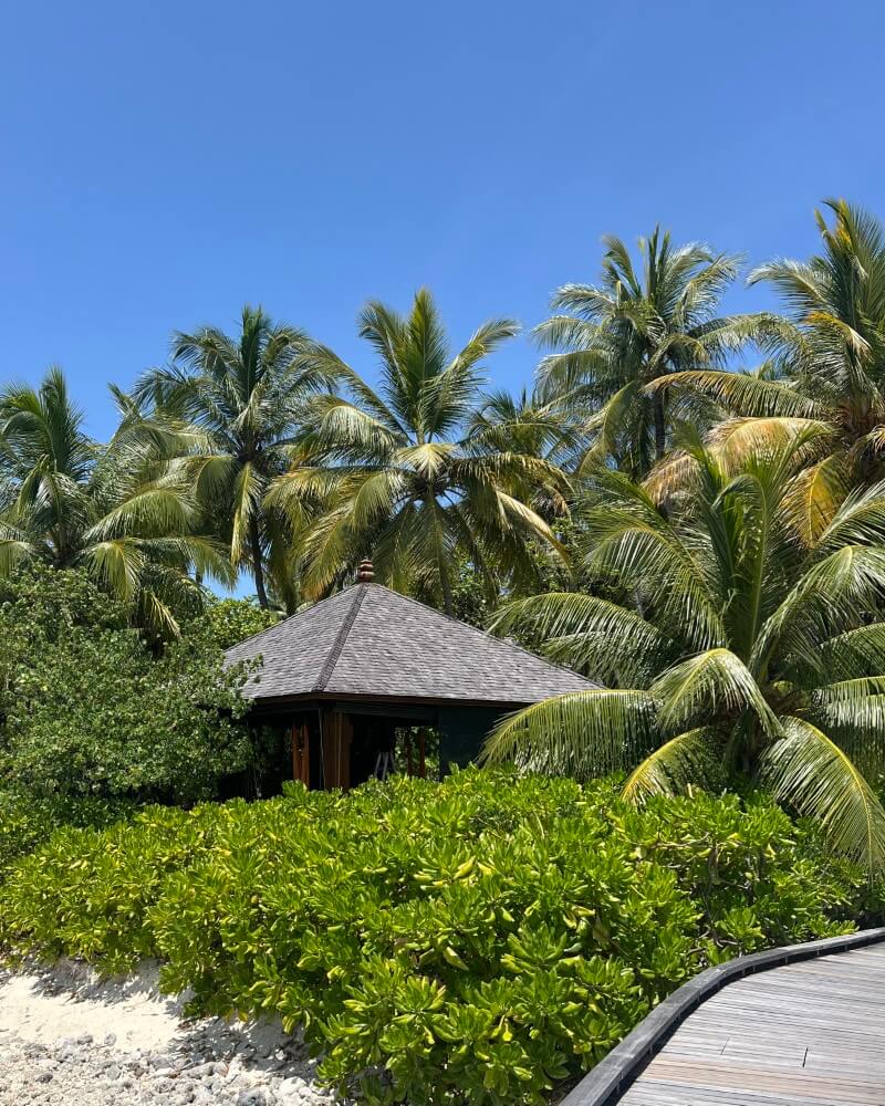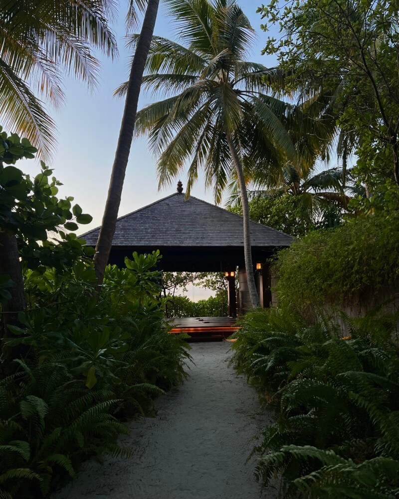 The pavilion does its job very well. It’s essentially an elevated elegant take on a nipa hut blending seamlessly into its surroundings it almost feels it grew there. A small path of greenery leads you in, feet sinking into soft white sand as you go. In the early hours, you can hear the birds doing their morning commentary, even the occasional bat finishing its night shift with a last, dramatic call. Incense lingers in the air, catching the morning light. And then the view opens up: the Indian Ocean, calm and endlessly blue, like it has all the time in the world. Just a short walk away is the lobster-shaped spa, because why not, where I later found a surprising amount of clarity, one of those things you don’t realize you needed until you’re actually there. It is the perfect place to find inner peace – or at the very least, attempt it.