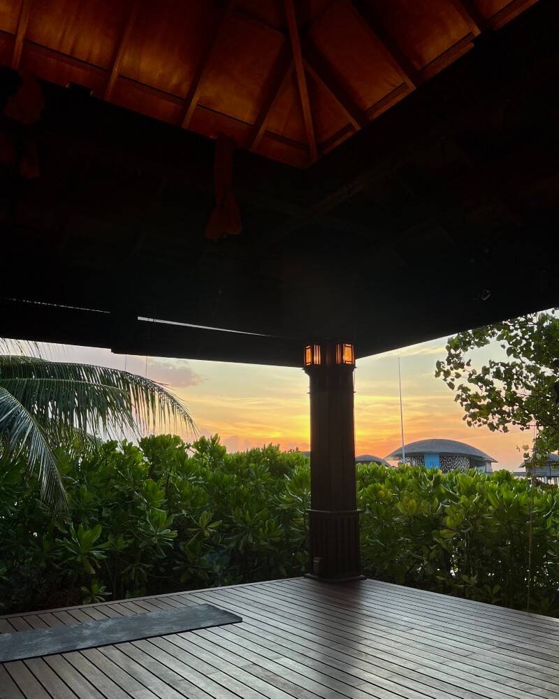Still, I set the alarm for 6:30 in the morning, just enough time to wash my face, brush my teeth, tie my hair in a bun, put on something vaguely appropriate – and voilà: ready to conquer the yoga world. By 6:55, the buggy arrives. I quickly get used to this – roll out of bed, and within minutes, I’m on my way. Except one morning, it doesn’t. I wait a bit, trying to look relaxed about it, as if this is all part of the experience. Eventually, a buggy appears, driven by the island’s spa doctor. Or possibly a guru. It isn’t entirely clear. He greets me unfazed, as though this is a perfectly normal arrangement. I get in without asking questions.