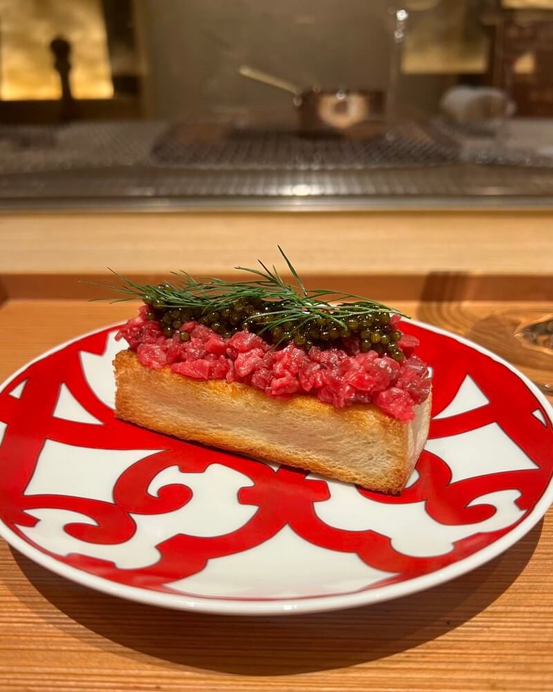 And then the tuna. Big, fatty pieces. He marinates it in soy sauce, rolls it around, and then places it on the grill. You watch it, you really watch it. The smoke starts rising, slow and almost teasing, and suddenly you’re completely invested in this piece of fish like it’s going to change your life. And when you think you can’t wait any longer, he takes it off and places it on top of the rice. Like a crown jewel of a Harry Winston collection. You take a bite, a bit of everything at once because it feels wrong not to. The salmon roe is the first to give in. It pops very gently, a small salty burst. Then the uni. Very fresh, almost too fresh in a way. It has that soft, custard-like texture that you don’t really think about until you’re actually eating it. It disappears, leaving this richness in your mouth. And then the tuna. You expect a bit of bite, something firmer to chew on, but there isn’t any. It’s fatty, hot from the grill, deeply savory in that very straightforward way good tuna can be. If someone had told you it was wagyu, you probably won’t argue.